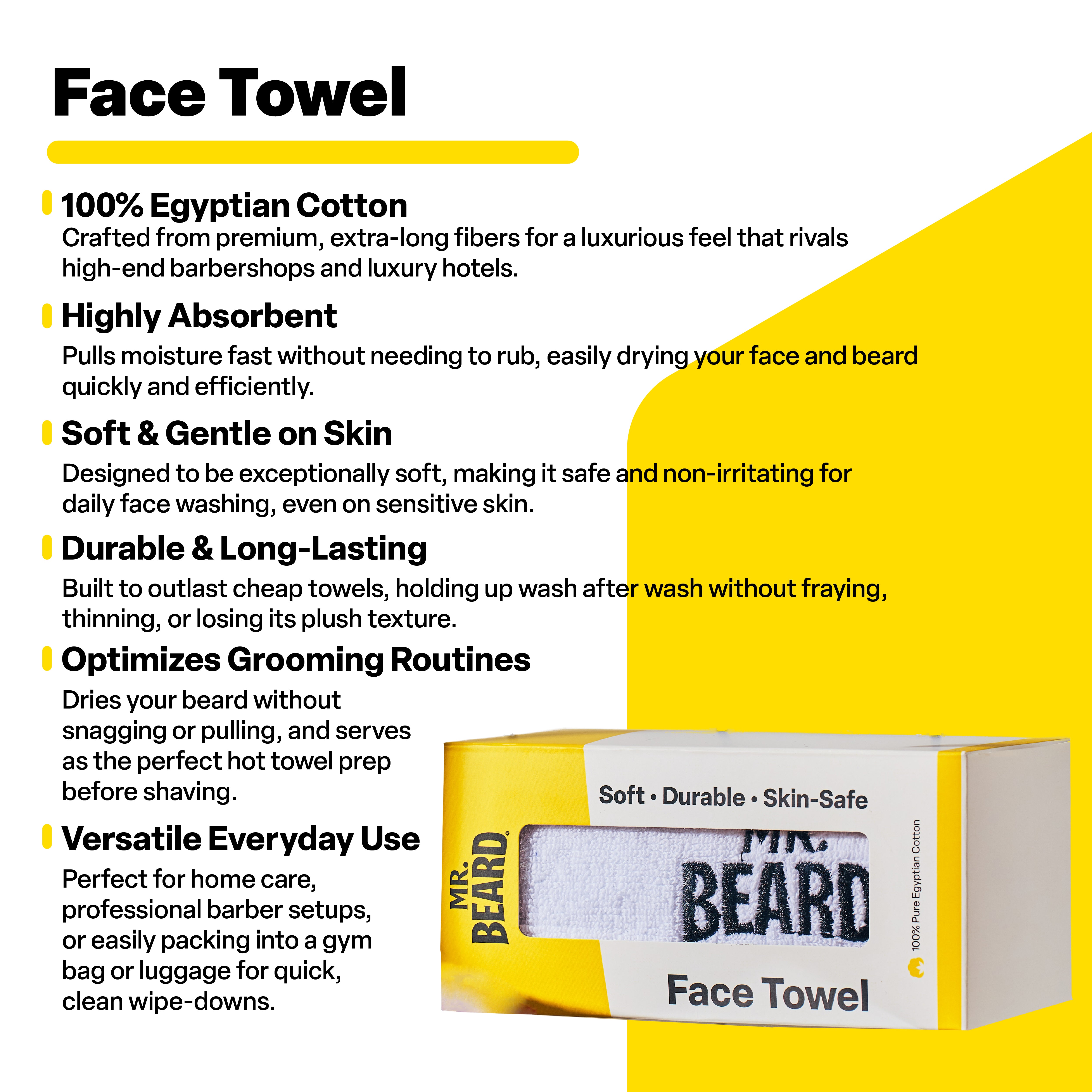 Built from 100% genuine Egyptian cotton, the Mr. Beard Face Towel is designed for men who take grooming seriously. Soft on the skin, tough on moisture, and made to outlast the cheap towels you keep replacing.