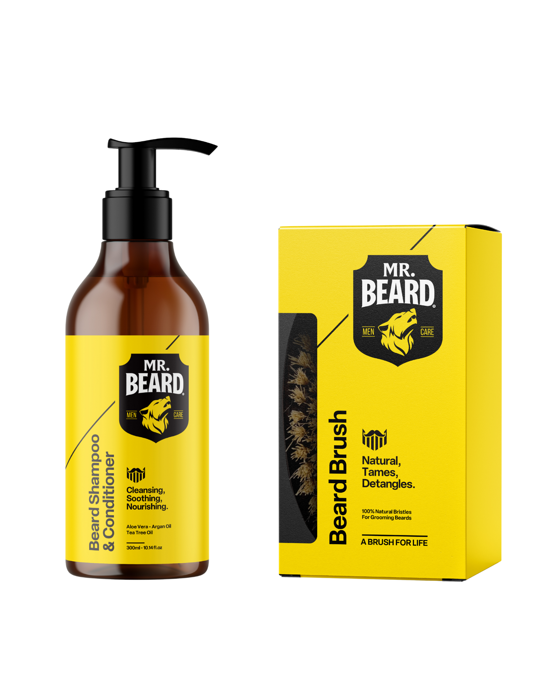 Beard Care Bundle (Beard Shampoo & Conditioner + Brush)