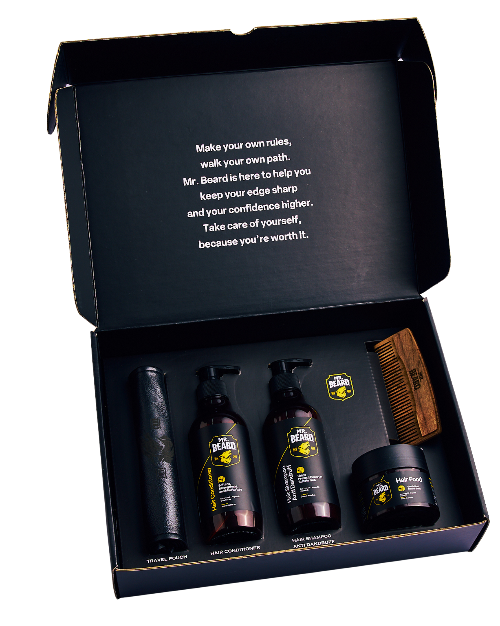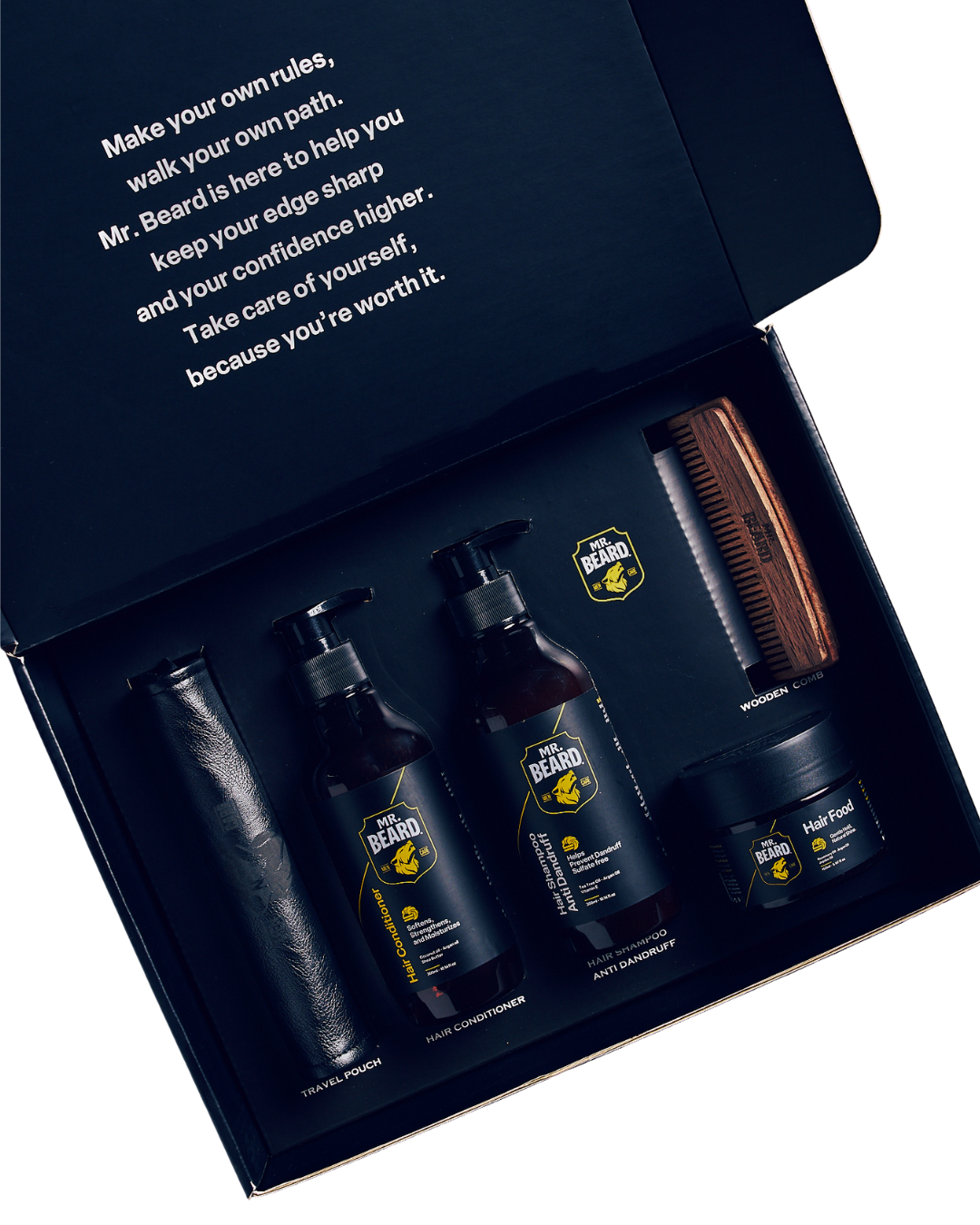 A complete hair care set designed to nourish, protect, and style — all in one sleek, masculine package. This premium kit includes five essentials every man needs for healthier, stronger hair and a well-groomed look.