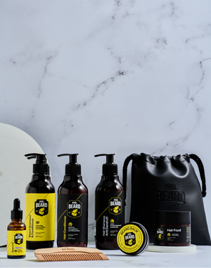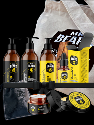 The Mr. Beard Mega Grooming Kit brings together every essential you need to keep your beard sharp, your hair strong, and your style on point — complete with a premium leather travel pouch and a stylish linen summer tote bag for effortless everyday carry.